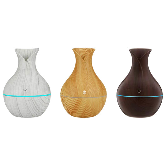 USB Humidifier Electric Wood Grain Essential Oil Diffuser Vase Mist Atomizer LED Sprayer for Home Office Car on Clearance
